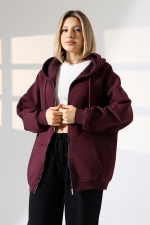 21618 KADIN 3 İP PENYE KOMPAKT ŞARDONLU METAL FERMUARLI SALAŞ OVERSİZE KAPŞONLU KANGURU CEPLİ SWEATSHIRT