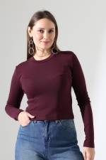 21651 KADIN FULL LYC KOMPAKT PENYE RİB UZUN KOL DİK BİSİKLET YAKA TSHIRT