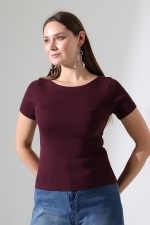 21996 KADIN KAYIK YAKA FULL LYC KOMPAKT PENYE KISA KOL TSHIRT