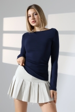 21951 KADIN KAYIK YAKA YANLARI LAST BÜZGÜLÜ FULL LYC VORTVİSK RİBANA UZUN KOL TSHIRT