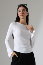 22157 KADIN KAYIK YAKA UZUN KOL UÇLARI İSPANYOL KOL FULL LYC VİSKON YANLARI BÜZGÜLÜ BLUZ