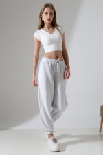 22169 KADIN DİAGONEL ŞARDONSUZ 3 İP PENYE KOMPAKT PAÇASI LASTİKLİ EŞOFMAN PANTOLON