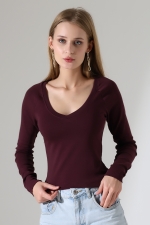 21948 KADIN UZUN KOL GENİŞ V YAKA FULL LYC RİBANA TSHIRT