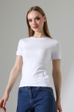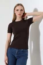22264 KADIN BİSİKLET YAKA KISA KOLU KALIN BİYELİ FULL LYC KOMPAKT PENYE KISA KOL TSHIRT